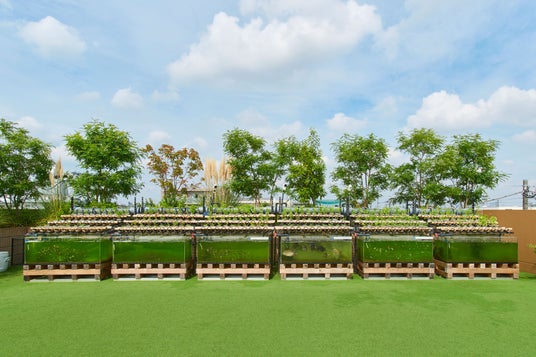 水耕栽培と養殖のシステムを合わせ持ち、環境にやさしい農業として世界で注目されている「アクアポニックス栽培」を活用し、農福連携ファームを運営。