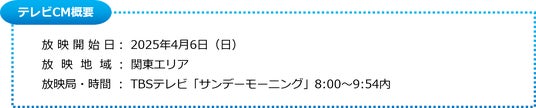 本CMは、以下の概要の通り放映するほか、特設ページでも公開しております。是非ご覧くださいませ。