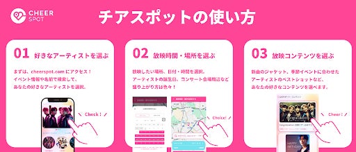 1.CheerSPOTアプリ( https://www.cheerspot.com/ )より、応援したいアーティストを選択