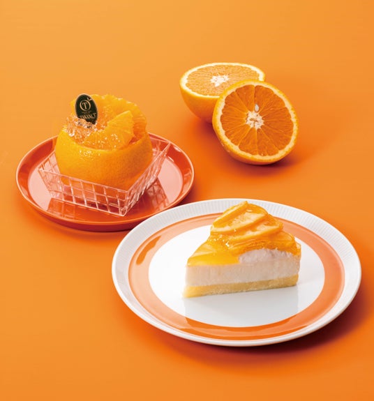 国産チーズを使用したプレーンタイプのチーズケーキにオレンジのシラップ漬けをトッピング。