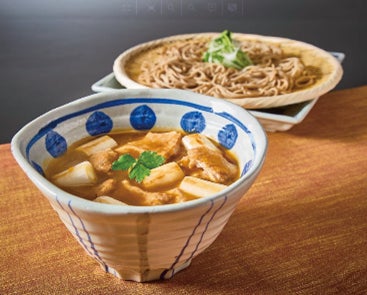 『純和鶏カレーつけそば』 税込1,480円 純和鶏の旨味が溶け込む出汁に、30種類以上の原料をブレンドして作り上げた、サガミのオリジナルスパイスを合わせ、香り高いカレーつゆに仕上げました。サガミ自慢のそばとカレーつゆがよく絡み、後引く旨さと程よい辛味が楽しめます。