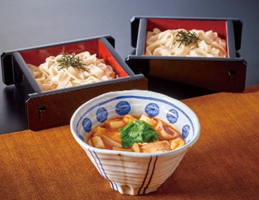 純和鶏(R)はジャパンフードセレクショングランプリ(最高位)を受賞しており、その肉質は適度な弾力があり、噛むほどに感じるうまみの濃さが特徴です。サガミのどの料理とも相性がよく、ワンランク上の美味しさを堪能していただけます。対象商品は『カレーうどん・きしめん』『五目うどん・きしめん』『みそ煮込』などです。