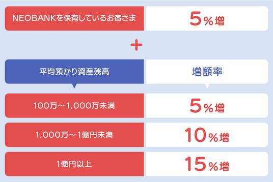 SBI FXトレードNEOBANK口座をお持ちのお客さまは、自動的に上記キャッシュバック金額に5%を増額させていただきます。