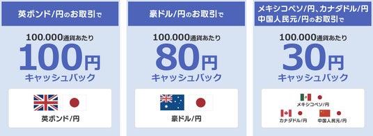 SBI FXトレード株式会社(本社:東京都港区、代表取締役社長:藤田 行生)は、本日より対象通貨ペアにおいて新規建てしたお取引数量を対象に、キャッシュバックキャンペーンを実施いたします。