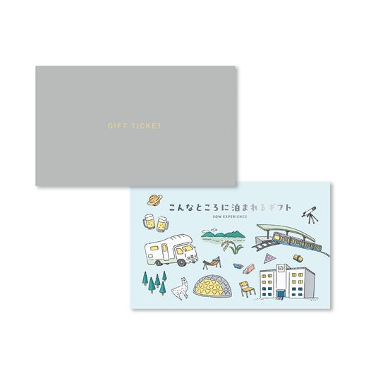 「こんなところに泊まれるギフト」は、受け取った人が、ユニークな宿泊施設から一つを選んで宿泊できるギフトです。選べるのは、駅舎や学校をリノベーションした施設、牧場や公園の中にあるグランピング施設、アートに囲まれたホテル、ビールの醸造所など、普段はなかなか泊まることができない場所ばかり。