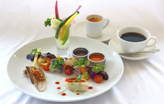 海の見えるレストラン「アイランドグリル」にてランチプレートも