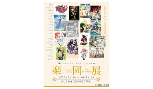 24年10月に15周年を迎えた『楽園 Le Paradis』。本展では『楽園』に執筆されてこられた歴代作家の原画を一挙に展示。オリジナルグッズも多数ご用意し、24年8月・新宿展を開催。