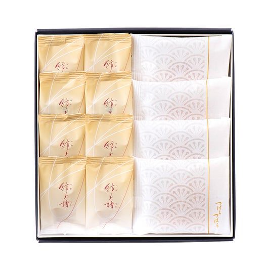 「紡ぎ詩」は、1985年(昭和60年)に発売されました、京菓匠 鶴屋吉信のベストセラー焼菓子です。国産の栗を刻み、北海道産小豆を用いたなめらかなこしあんと合わせて包んだひとくちサイズの美味しいおまんじゅう。ケシの実のぷちぷちとした食感、香ばしい風味がアクセントです。