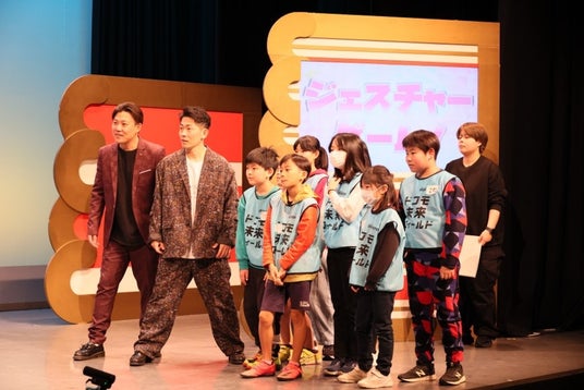 ネタのあとは子どもたちも参加してのゲームコーナー!「フルーツポンチ」、「ジャングルポケット」、「Everybody」がチームリーダーとなり、「ジェスチャーゲーム」や「ポーズを合わせましょう!」 のゲームで競い合いました。イベント終了後、子どもたちは「お笑いが大好きだから、本物の芸人さんと一緒にできて嬉しかった!」「お笑い芸人になりたいと思っているから、色々知れて良かった!」と興奮した様子で語っていました。