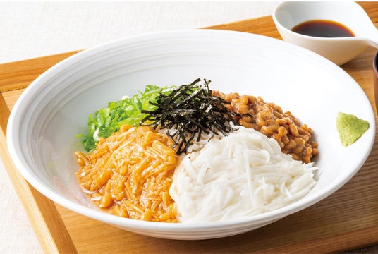 納豆・なめ茸・千切りとろろ・青ねぎでさっぱりと。
