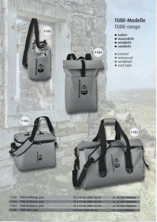 昨年実施し、好評を得たリュックタイプチューブバッグは20リットルの大容量になり、汚れが付きにくくそれでいて繊細なグレーカラーにブラッシュアップ。強力な防水性能とシンプルでスマート、スタイリッシュなデザインに内部はPEVA素材を使用、仕切りの無いチューブ状の構造に立っており、買い物などのタウンユースから本格的なアウトドアまで使用できます。小型で使い易い3リットルタイプと合わせて公開予定です。
