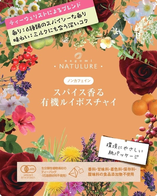 ノンカフェインの有機ルイボスをベースに5種類のスパイスを使ってティーウェリストが本格的に愉しめるチャイティーに仕上げました。