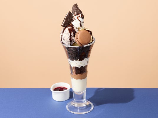クッキー&クリームアイスや濃厚なバニラアイス、ホイップ、ガトーショコラ、下層のチョコクリームやミルクプリンにより、クッキー&クリームらしいミルクとチョコの味わいを存分にご堪能いただけます。ザクザク食感のココアビスケットチップが食感にアクセントを加えます。