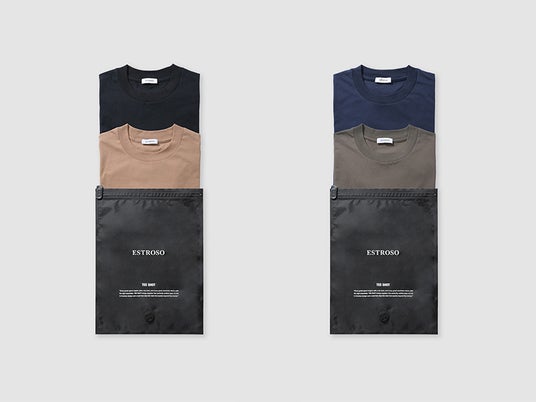 Tシャツ2枚は、ESTROSOのロゴを配したスライダー式圧縮バッグに収納。