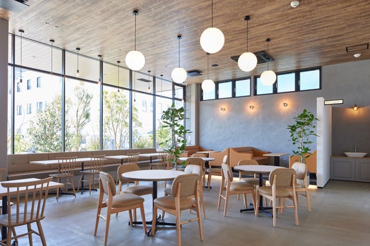 焙煎室が見える店内。コンセント・Wi-Fi完備