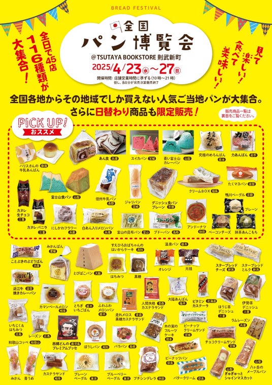全国各地のご当地パンが集結するイベント『全国パン博覧会』を「幕張 蔦屋書店」(千葉市)、「TSUTAYA BOOKSTORE 則武新町」(名古屋市)で4月16日より順次開催