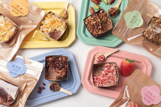 「あんこばこ」は、自家製のあんこに、バターや卵などを加えて焼き上げた、和のカップケーキです。ベースとなる生地には、北海道産の小豆を、美十のあんこ職人が丁寧に炊き上げた自家製こしあんを使用しています。そこに、あずきの甘納豆、アーモンド・ピスタチオ・ピーカンナッツの3種類のナッツ、愛媛県産の甘夏のドライフルーツ、いちごのフリーズドライといった4種類の多彩なトッピングを合わせました。それぞれの素材が持つ風味と食感が、絶妙なバランスで調和する、和と洋の美味しさを結んだスイーツです。