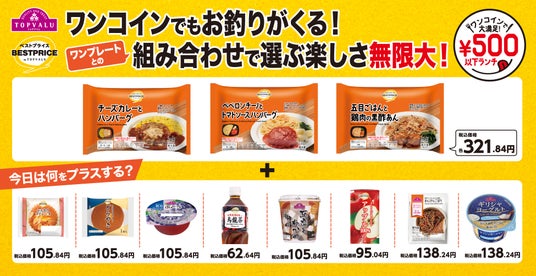 ワンプレートのお供にサラダやみそ汁、お茶やデザートなどトップバリュ商品を組み合わせ500円以下(ワンコイン)にすることもでき、お客さまの毎日の食事に幅広い選択肢をご提供します。