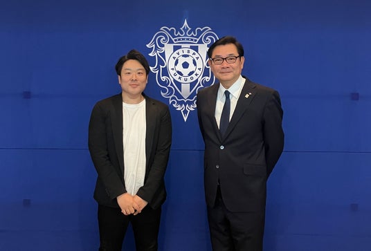 右から、アビスパ福岡代表取締役会長 川森敬史氏、株式会社Essen営業本部長 本間夏貴