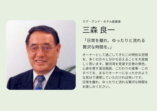 限られた存在であったこの特別な空間を、多くの皆さまと共有したいという想いから、ついに「オーナールーム」の販売が開始されました。贅沢な空間設計と、自然が織り成す美しい景色、そして施設の歴史が融合したこの特別な場所が、お客様の心に深く刻まれるかけがえのない時間をお届けすることを願っております。この特別な素晴らしい至福のひとときをぜひご堪能ください。