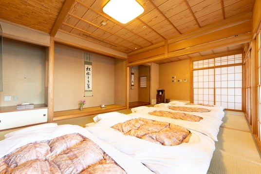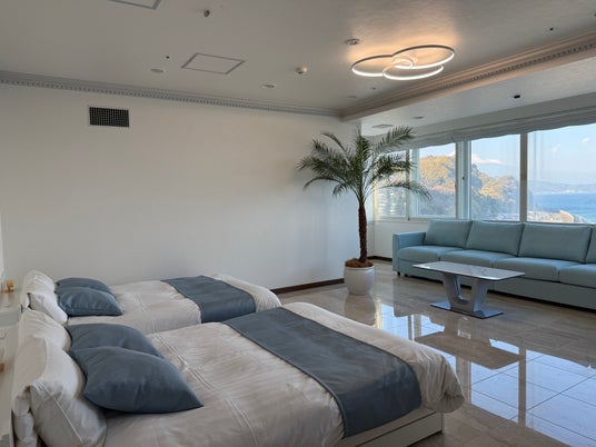 オーナールーム(和室)約96平米広々とした14畳の畳のお部屋からは、雄大な駿河湾の景色を一望でき、大きな窓から差し込む自然光とともに贅沢な時間をお楽しみいただけます。また4.5畳の畳のお部屋では、茶道体験ができるように抹茶セットをご用意しており、伝統的な日本の風情を感じながら、心安らぐひとときを過ごせます。寝具にはムアツ布団を使用しており、極上の眠りをご体験いただけます。心身ともにリラックスできる至福の空間をご提供します。