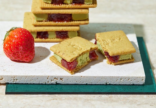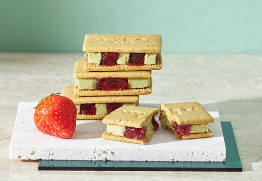 指先にしっとり吸い付いて、お口の中に苺とピスタチオがとろっと溢れるやわらか食感にきっと驚いてしまうはず。甘酸っぱい苺とナッティなピスタチオのマリアージュを、心ゆくまでお楽しみください。