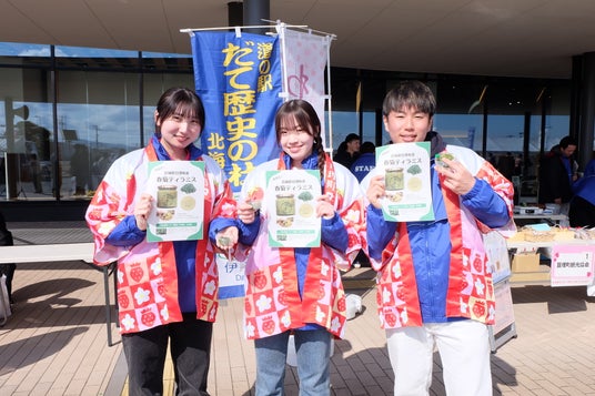 今回開発したのは「春菊ティラミス」と「米粉の春菊スイーツ」など5アイテムで、3月9日(日)に開催された「伊達なわたりまるごとフェア」で発表し、町長はじめイベント来場者に対し試食を行いました。試食後にアンケートを実施したところ、90%以上の方が「購入したい」と回答し、味の満足とともに商品に対する期待の高さが伺えました。