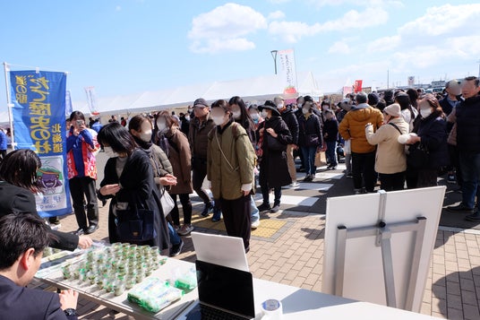 発表会後には来場者約200名に対し、「春菊ティラミス」の試食を提供しました。試食後の感想は「美味しい」「春菊の苦みがちょうどいい」「この味好き」といったうれしい声が聞こえ、アンケートに回答いただいた方の90%以上が「購入したい」を選びました。
