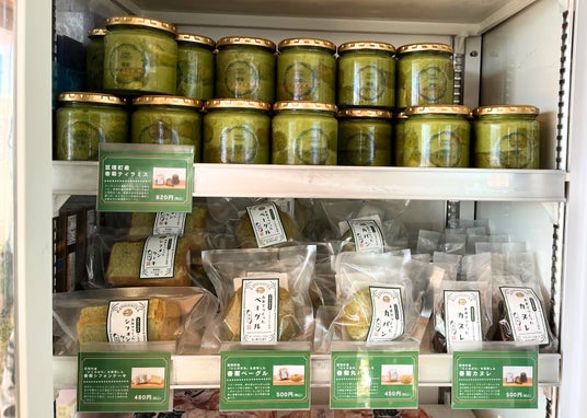 そんな中、立ち寄った地元の直売所で出会ったのが「春菊ソフト」。ひと口食べると、まるで抹茶のような奥深い風味が広がり、春菊と抹茶の意外な親和性に気づきました。この発見をきっかけに、春菊の魅力を最大限に引き出す新たな商品開発がスタートしました。今回はその第1弾として「春菊ティラミス」を企画し、同時に亘理町産「ひとめぼれ」と春菊を合わせた「米粉の春菊スイーツ」など合計5アイテムを開発しました。
