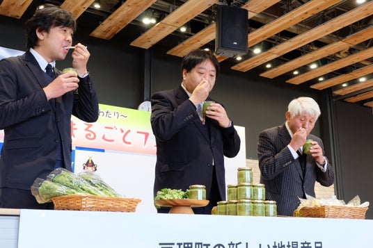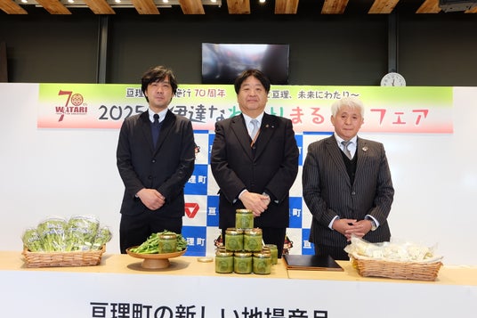 3月9日(日)に開催された「伊達なわたりまるごとフェア」では、亘理町の山田周伸町長、JAみやぎ亘理の大堀正信代表理事組合長、当社社長執行役員山田健介が出席し、商品発表会を実施しました。冒頭、山田町長は「本品は、春菊の魅力を引き出し、新たな可能性を皆様に楽しんでいただけるものとなっている。今回の新商品で春菊の産地であることを広くPRしたい」と語りました。実食後にJAみやぎ亘理の大堀氏は「春菊は亘理町の隠れた名産でピークには200名を超える生産者がいた。震災後、生産者も減少し、それに伴い生産量も減少して現在はピークの1/3程度となっている。この春菊ティラミスは春菊の苦みとスイーツの甘さが融合した非常に美味しい商品で、春菊の新しい可能性を引き出している」と述べました。