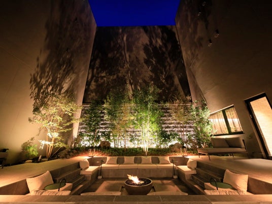 本館および温浴棟の間には、四季折々の箱根・仙石原の移ろいを感じられるテラスを設置。