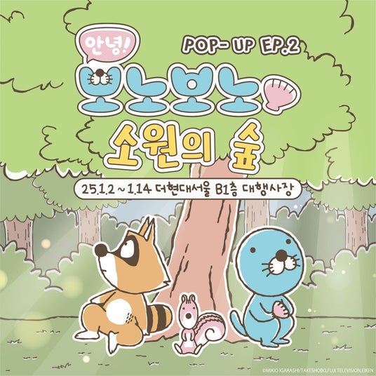 2025年1月2日(木)~1月14日(火)には、トレンドの発信地であり国内外から多くの人が訪れるThe Hyundai Seoulにて新年をテーマとしたポップアップストア「POP-UP EP.2 : アンニョン! ぼのぼの 願いの森」を開催いたしました。いがらしみきお先生によるサプライズイベントや新年限定のグッズ、おみくじコーナーやフォトブース等シーズンにちなんだコンテンツを多数用意し、大好評をいただきました。