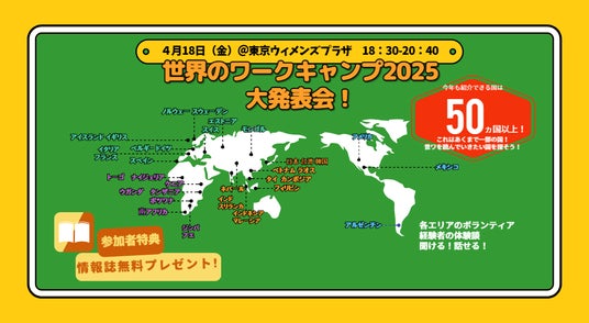 今年も魅力的なワークキャンプが満載! 本イベントでは『世界のワークキャンプ2025』のダイジェストを発表し、参加者には無料でプレゼントいたします。 さらに、ワークキャンプ経験者の体験談、個別相談や説明会の時間もご用意!