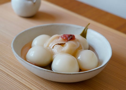 甘味みつや本店(イートイン)で提供している季節限定「さくらみつ白玉」(伊勢丹新宿店の催事では白玉手箱に入れてご提供になります。)