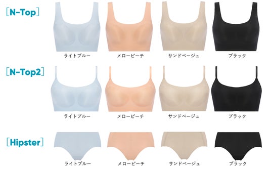 トップはハーフトップタイプの[N-Top]と、アジャスターが付いてストラップの長さ調節が可能な[N-Top2]の2タイプ。ショーツはベーシックな[Hipster]をご用意しました。すべて4色展開でコーディネートが可能。アイシーなブルー、ピンクに加え、落ち着いたトーンのベージュ、ブラックをご用意しています。