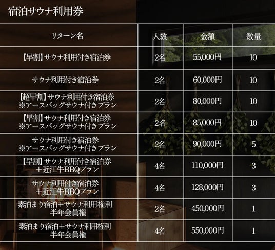 2.宿泊サウナ利用券Makuakeだけでお得に購入できる特別なチケットです。