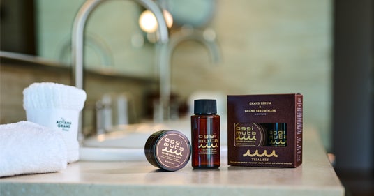 2025年4月1日よりTHE AOYAMA GRAND HOTELにご宿泊いただいた「一休.com」ダイヤモンド会員様を対象に、オッジィオットとmuta MARINE(ムータマリン)のコラボレーションによって誕生した高機能ヘアケアシリーズ『oggimuta(オッジィムータ)』のトライアルセットをプレゼントいたします。