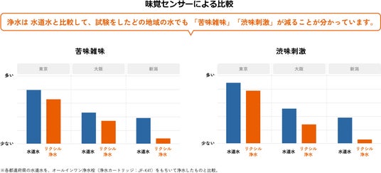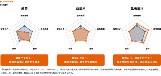LIXILの浄水カートリッジは、PFASを取り除くだけでなく、味覚センサー(※3)のデータで飲み水としておいしいのはもちろん、調理品の味や香りにもさまざまな効果があることがわかっています。ぜひ、安心でおいしい浄水を提供するLIXILの浄水器付き水栓と純正浄水カートリッジをご使用ください。
