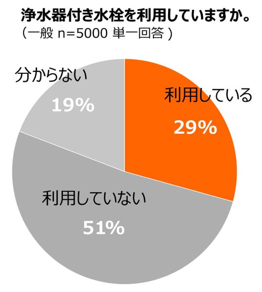 今回の調査で、家庭での浄水器付き水栓の使用状況について尋ねたところ(※1)、約3割(29%)が浄水器付き水栓を使用していると回答しました。