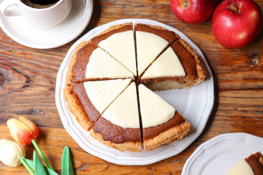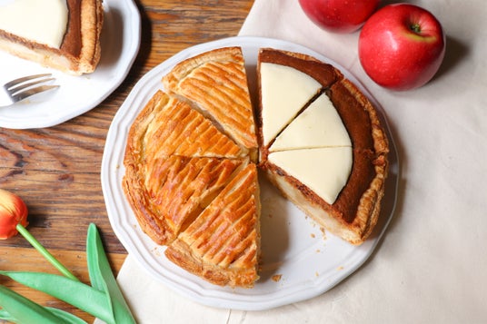 パイ生地にたっぷりの青森県産りんごと自家製アーモンドクリームを敷き詰め、カリッと香ばしいくるみとラムレーズン、すりおろしたにんじんを混ぜたキャロットケーキ生地をのせて焼き上げました。