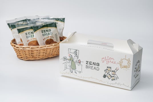 ZENBを愛用されているイラストレーターMIMOEさんオリジナルデザインのギフトボックスに、カラダ想いのまるごと豆粉パン「ZENBブレッド」を詰め合わせました。