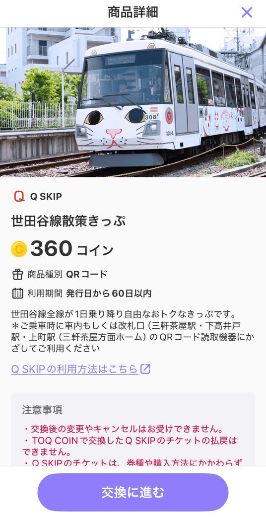 当社は、本日2025年4月2日(水)に東急線アプリのアップデートを行い、「TOQ COIN」サービスで貯めたコインを東急線アプリ内でデジタルチケットサービス「Q SKIP」(以下、「Q SKIP」)で販売している東急線ワンデーパスなどの4券種に交換できるようになりました。