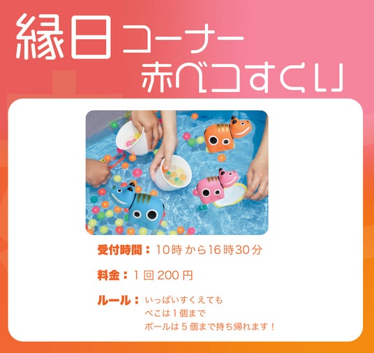 コンテンツ:似顔絵、赤べこすくい、ガラガラなど