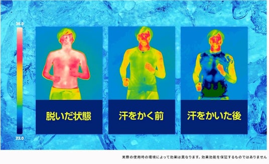 アイスメッシュを着用し、さらに汗をかくことで体温が下がり、クーリング効果が発揮されます。