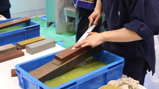 ・刃物製造工程(銘切り、包丁の柄付け、木柄の口金入れ等)の実演