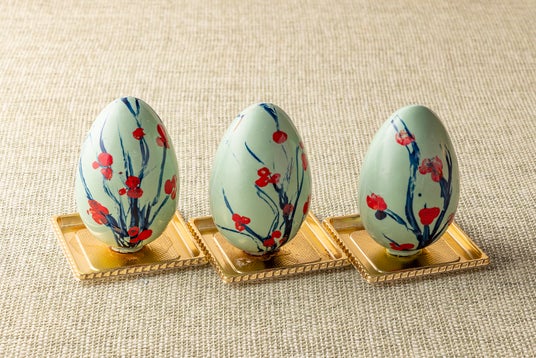 ノスタルジックなタッチで描かれる梅の木が印象的な「プラム・ブロッサム」。淡いグリーンと、カカオバターを用い、ハンドペインティングで仕上げる梅のアートが洗練された印象のエッグチョコレートはカカオバリーのブラン・サタンを用いました。卵の中には各種プラリネやボンボンが配され、一口毎に春の訪れを告げていきます。