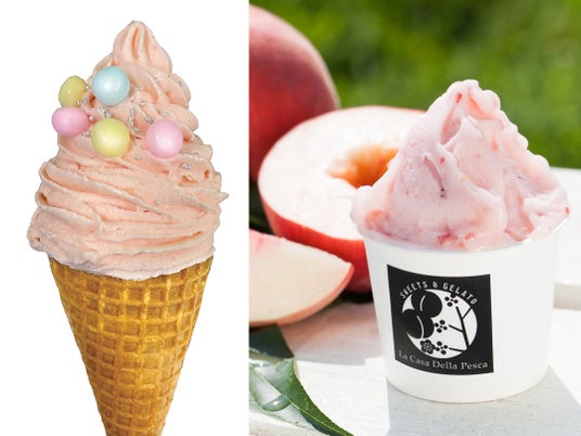 桃ミルクのソフトクリーム(700円 ※写真左)/桃農家カフェ ラペスカ