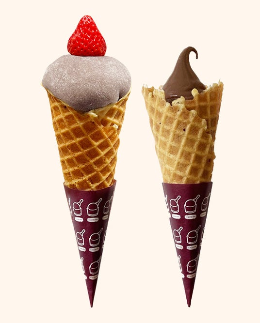 オーダーを受けてから、その場で焼いて提供するコーンは香ばしくてカリッカリの食感!今年は店舗でもなかなか出会えない『プレミアムチョコレートソフト』が初登場!こだわり抜いたオリジナルレシピで仕上げた、濃厚で贅沢な味わいのチョコレートソフトと、あいぱく(R)人気商品『いちご大福ソフト』のチョコレートバージョンも初登場!チョコ好きなら絶対に見逃せない逸品です!