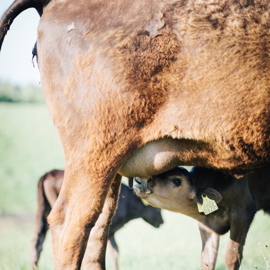 3.親子で放牧私たちは、親子で放牧する「周年親子付け放牧」を実践しています。母牛と子牛が一緒に過ごすことで、子牛は母牛から愛情をたっぷり注がれ、健やかに育ちます。この自然な育成方法は、牛たちの心身の健康を支えています。
