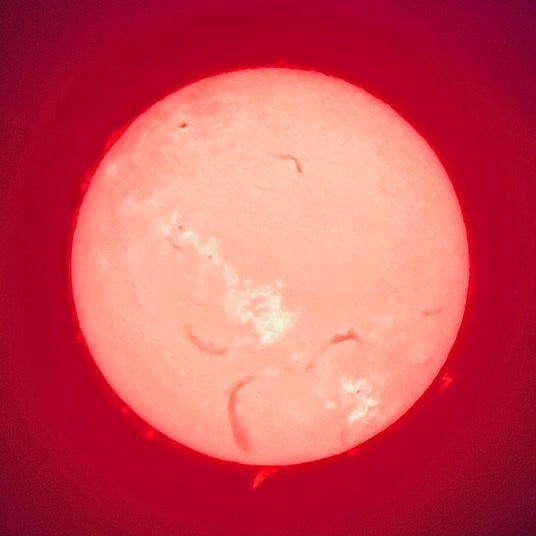 太陽望遠鏡でとらえた太陽(スマートフォンのカメラを取り付けて撮影)